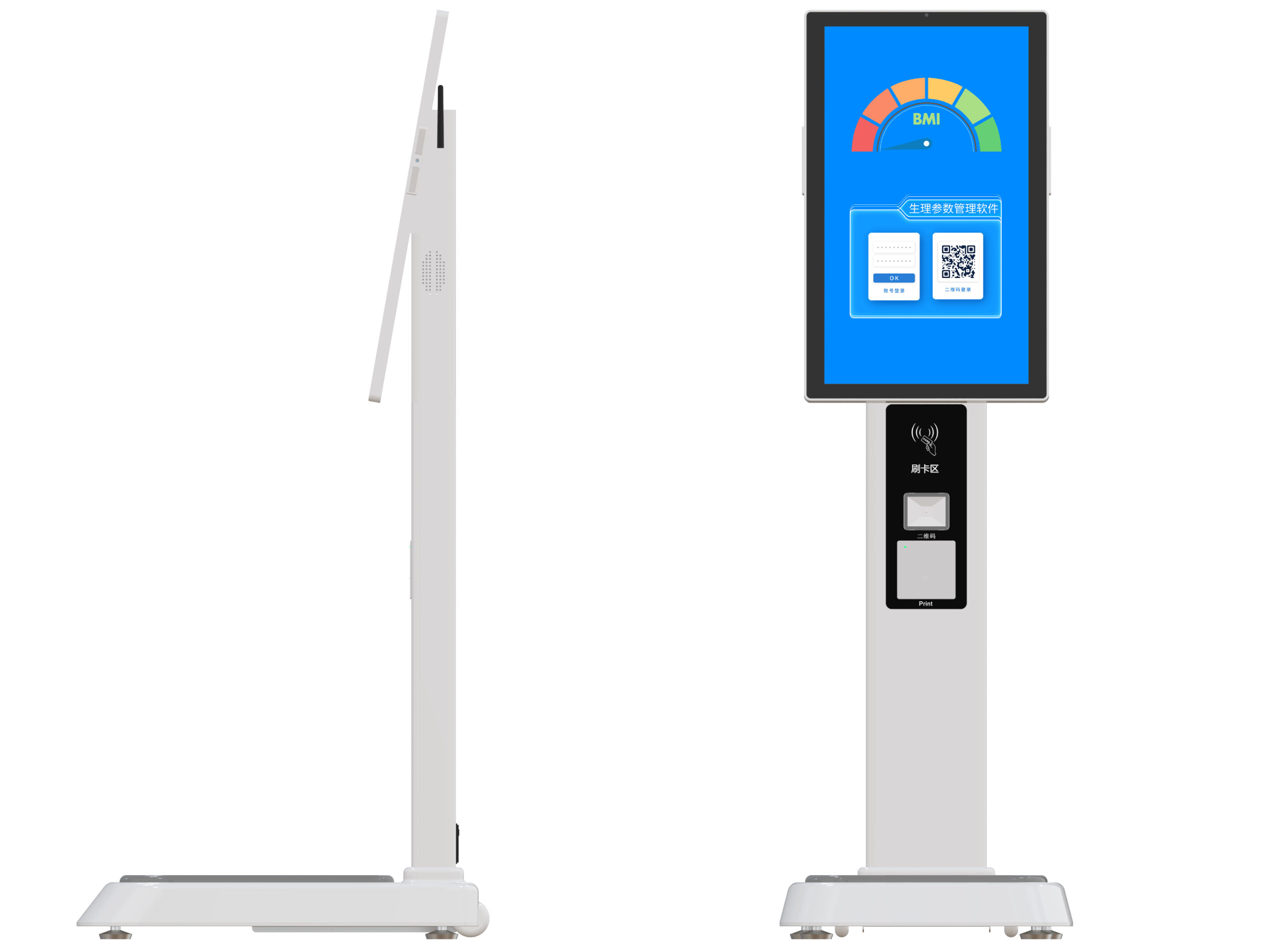 產(chǎn)品特點(diǎn) | 一體化設(shè)計(jì)、安裝維護(hù)理簡單,安裝移動(dòng)輪,移動(dòng)方便 全程動(dòng)畫語音引導(dǎo)自助操作, 多種身份識別:二維碼、手機(jī)號、可拓展(人臉識、身份證) 23.8英寸電容高清觸摸屏,操作簡單自助 安裝高清攝像頭,可拓展遠(yuǎn)程視頻 健康報(bào)告單快速打印 尺寸:長0.5米*寬0.4米*高1.3米 支持第三方平臺數(shù)據(jù)對接 |